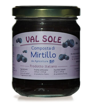 Ottenuta con una lavorazione artigianale, i mirtilli vengono versati in una “boule” con succo di mela e fatti bollire sotto vuoto a 45°C per mantenere intatte le proprietà organolettiche, ottenendo così una composta di soli mirtilli con un gusto INTENSO e sapore ORIGINALE. Ideale la mattina con una fetta biscottata.